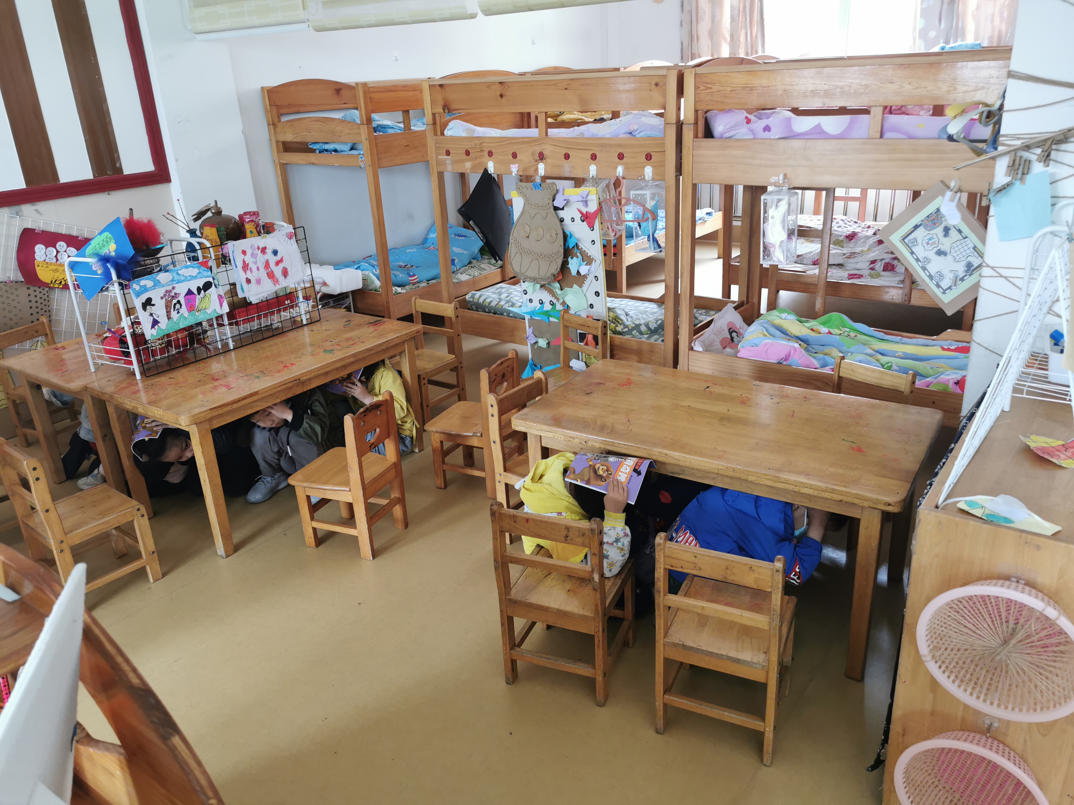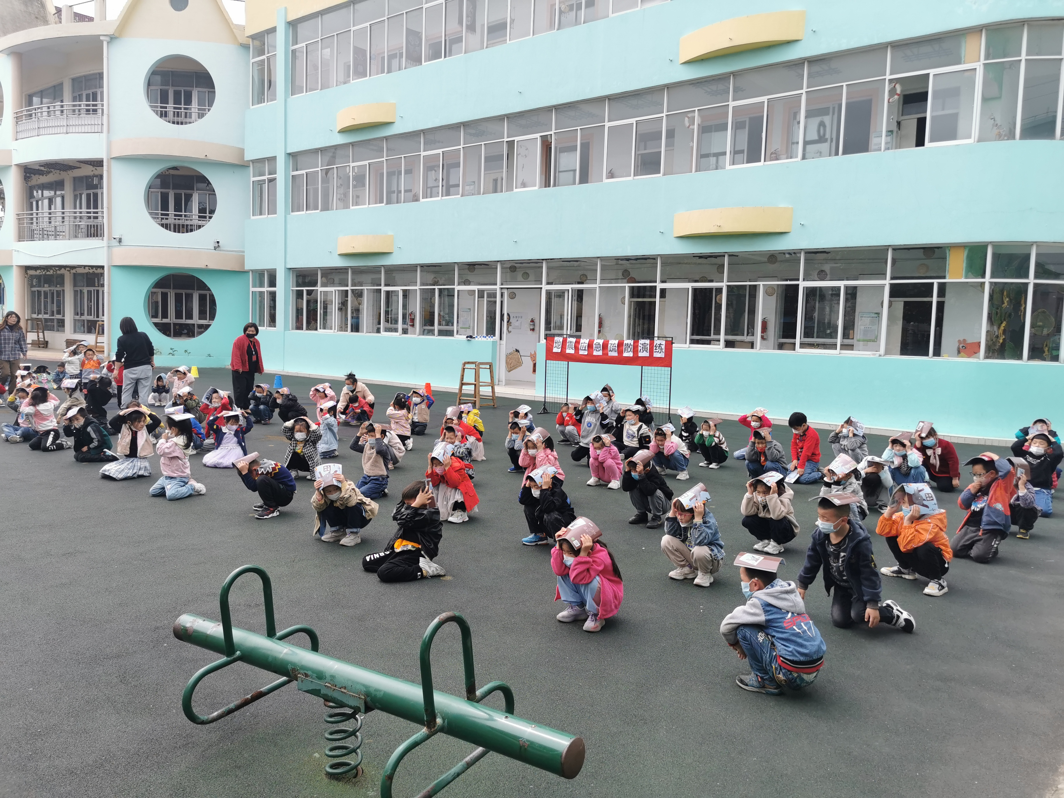 确保本次演练成功,学校负责人在演练前组织召开演练部署会议。相关教职人员熟悉路线及岗位分工,各班级在演练前对幼儿进行了防震疏散应急演练安全教育。随着第一次演练信号响起,防震疏散演练正式开始。班主任指挥幼儿进行紧急避险。幼儿能够第一时间双手抱头或拿起书本遮挡在头部,躲避在桌子下面。