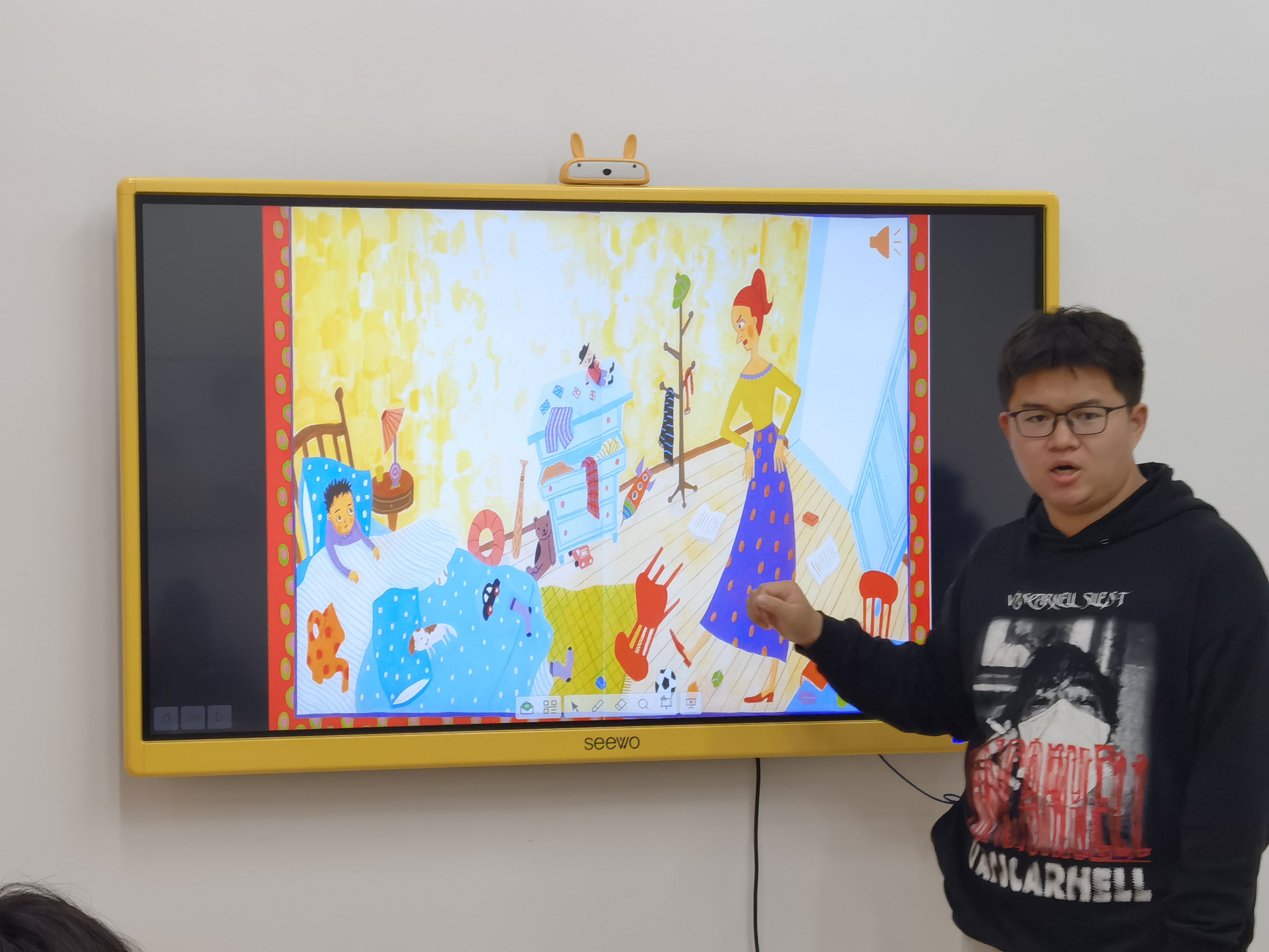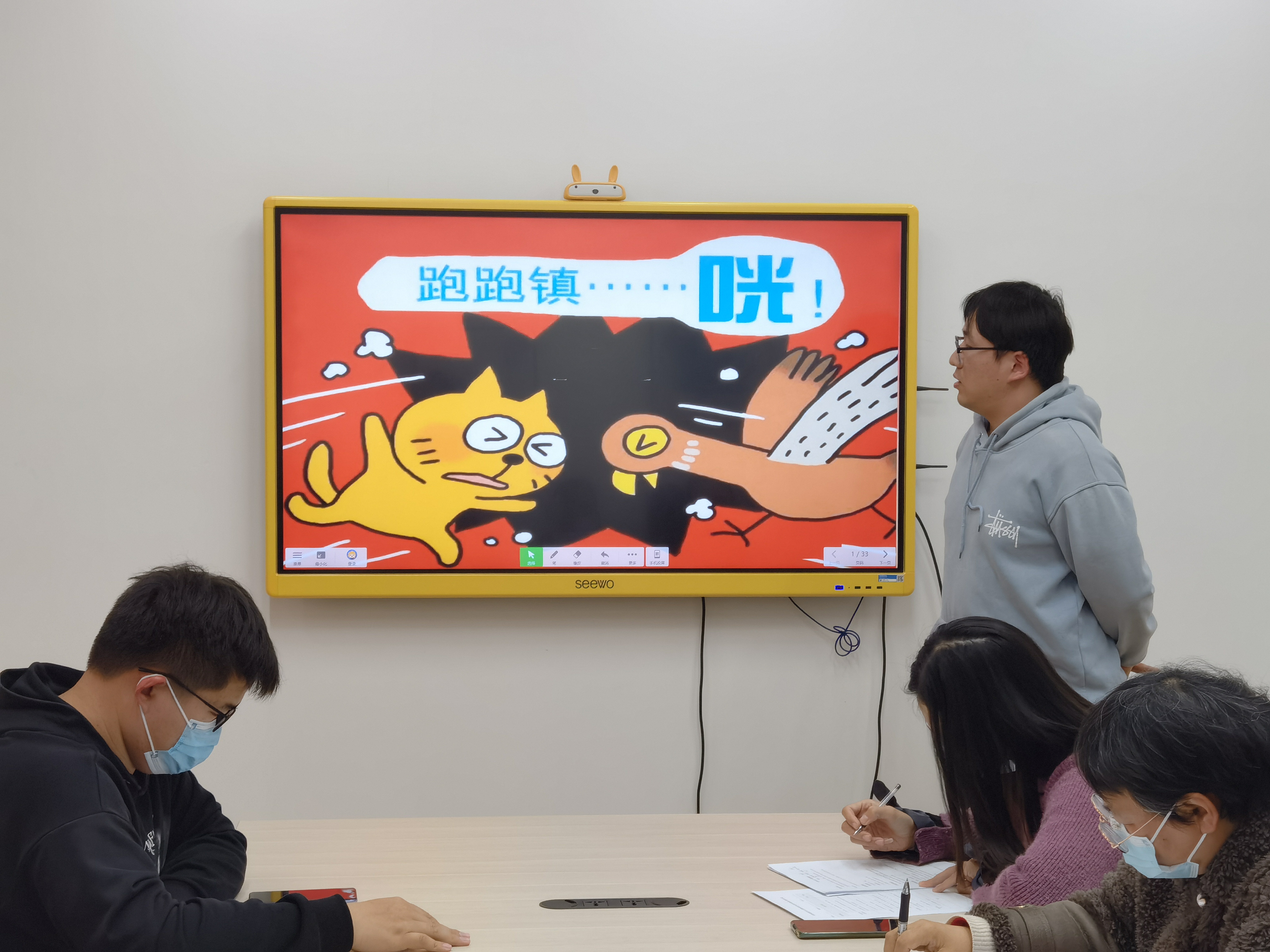 屈东海的中班语言《跑跑镇》,将绘本故事与希沃白板有效融合,运用移动、组合、音效等操作方式吸引孩子们的注意力,有效实现师生互动。运用平板与白板的连接,实时将幼儿的操作展示于白板,及时做好幼儿完成情况反馈。
