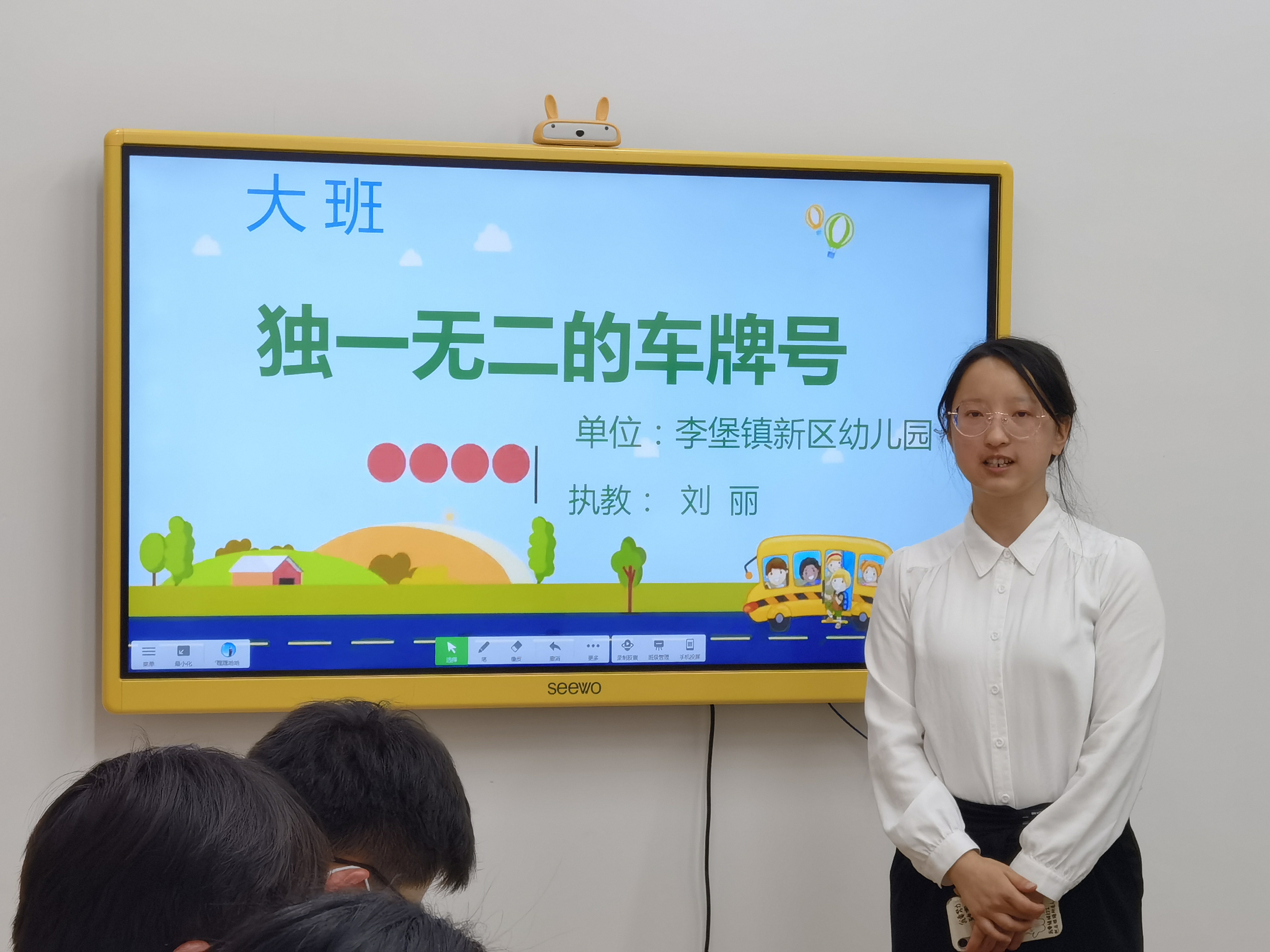 刘丽的大班综合《独一无二的车牌号》,运用希沃白板中的趣味课堂小游戏,激发孩子探究单双数,运用聚光灯功能引出探究课题,运用无限克隆技术变出一样的车,运用视频的剪辑插入,将法律法规生动的融合在教学中,活动中,运用平板与白板连接,实时将操作发布于幼儿,让幼儿实时操作,巧妙运用信息化手段给予幼儿自主探索的空间。