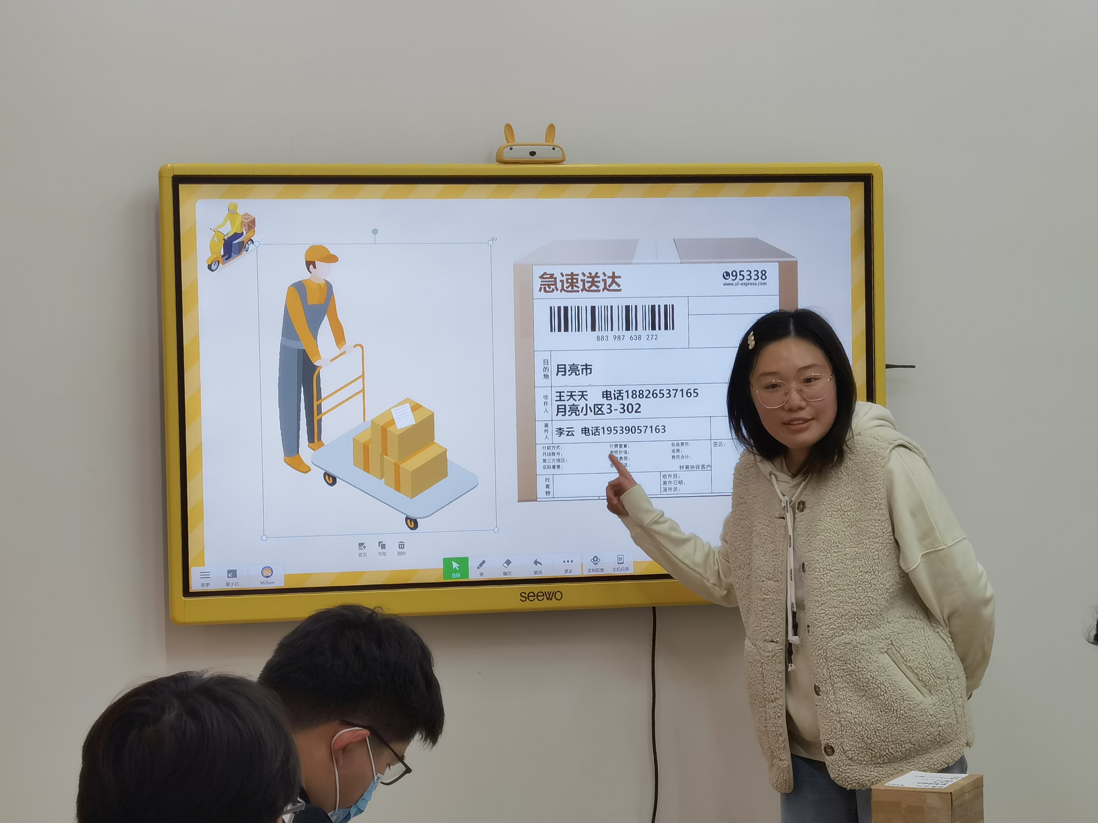 黄茜的大班数学《极速送达》,以现实生活中取快递为切入点,巧妙地运用超链接,插入动画、音频等现代信息化手段,循序渐进引导幼儿,有梯度的让幼儿进行自主操作,解决生活中取快递遇到的问题。