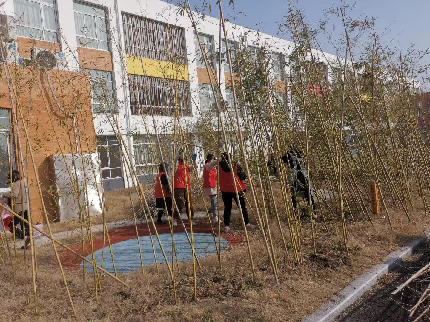 在万物复苏的季节里,老师们置身在幼儿园竹林中,清除未成活的竹子,排除安全隐患;幼儿游戏区,老师们相互配合塑封牛奶箱、饼干箱,寻找供孩子们游戏的低结构材料……