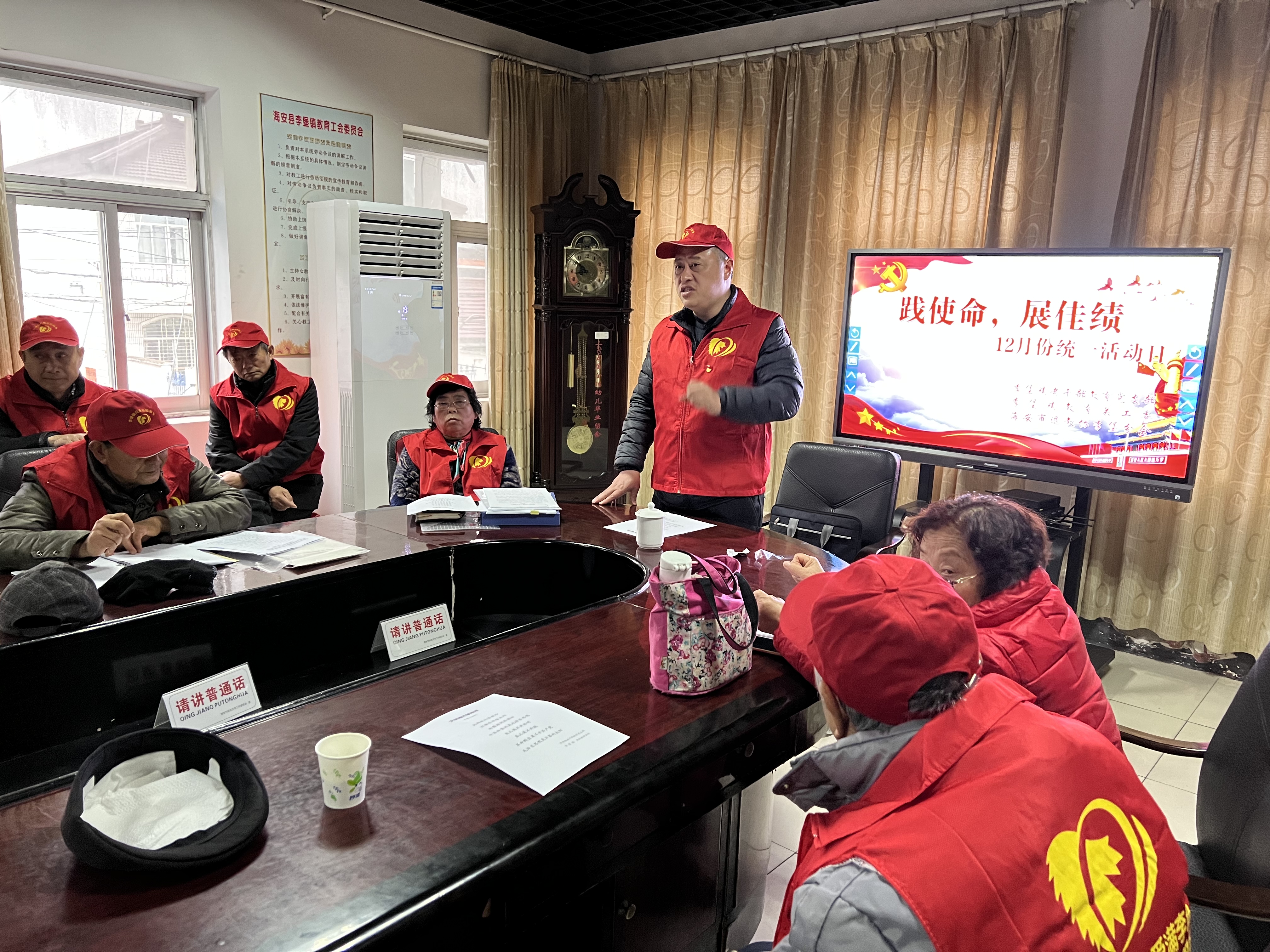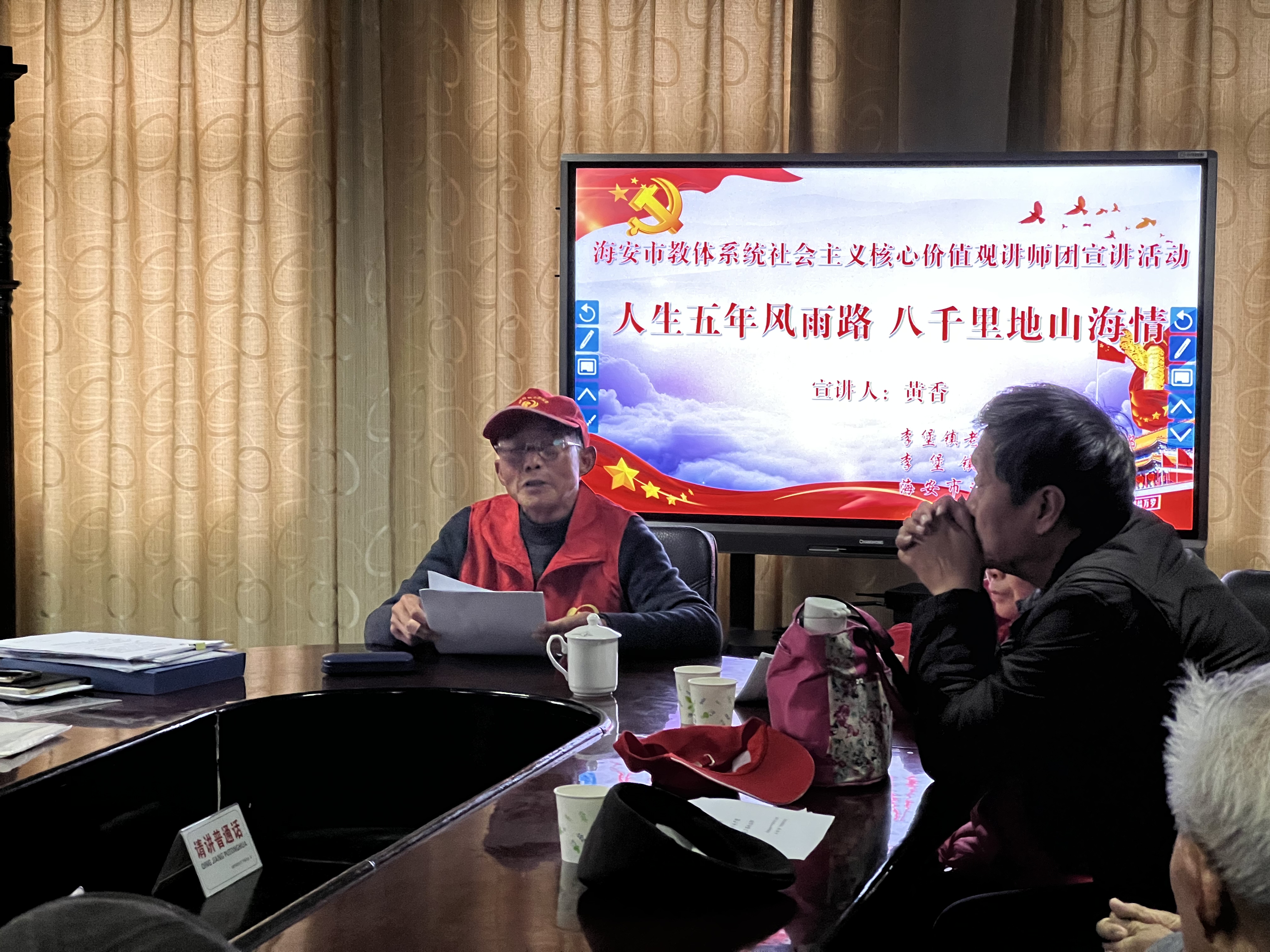 为认真贯彻落实学习十九届六中全会精神和《关于党的百年奋斗重大成就和历史经验的决议》,引导广大党员从党的百年奋斗史中汲取智慧和力量。12月24日下午,李堡镇老干部教育党支部开展了“践使命,展佳绩”宁蒗支教事迹宣讲会暨专题党课活动。活动由李堡镇老干部教育党支部书记许金平主持,老党员、老教师近50人参加活动。