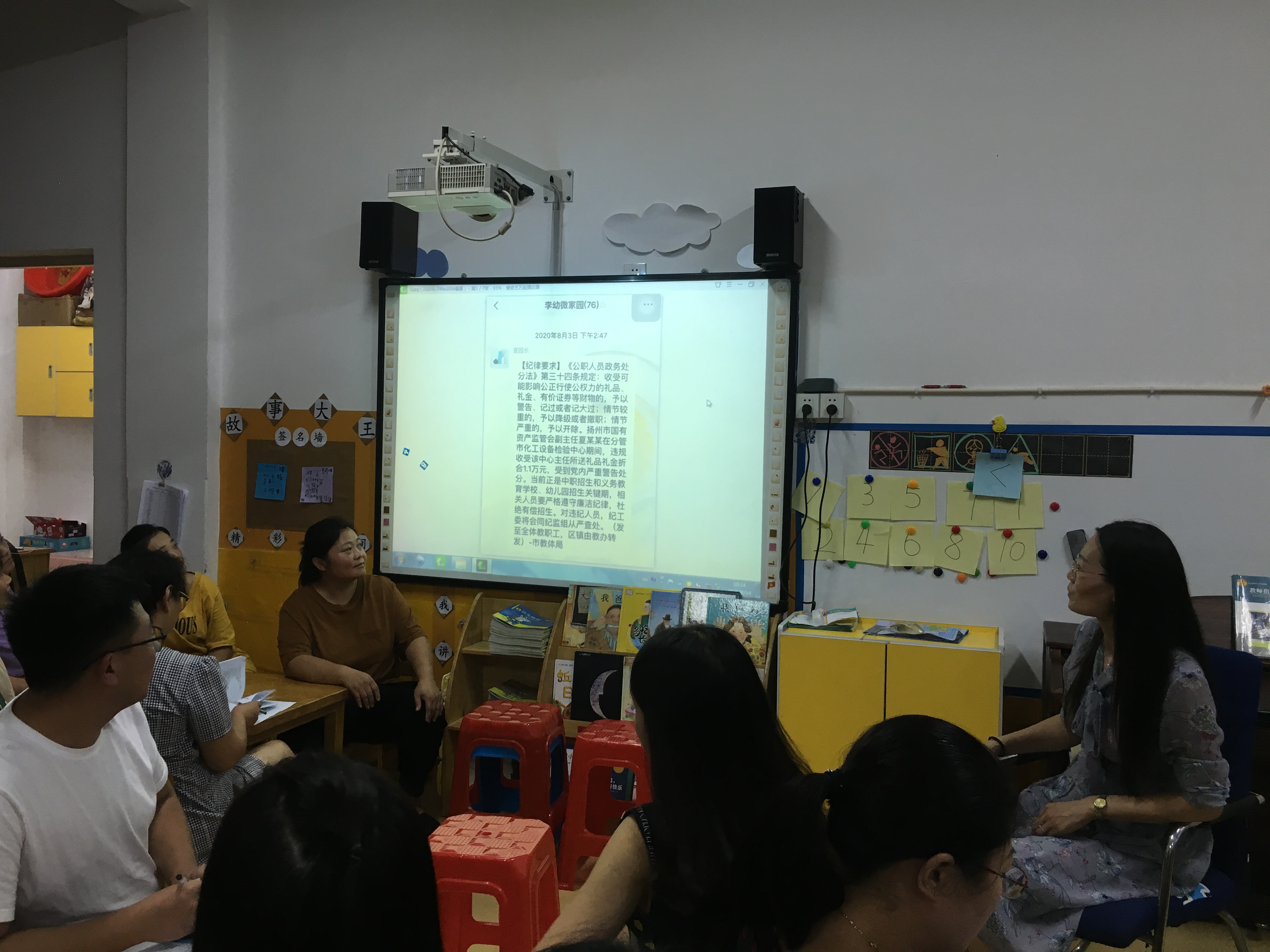9月7日下午政治学习时间,周园长组织全体教职工学习了“关于在全县教育系统开展2020年“算好廉政帐”专题教育月活动的通知”,阐述了“算好廉政账”专题教育月活动的主要内容和具体安排,并对此项工作做了具体部署。