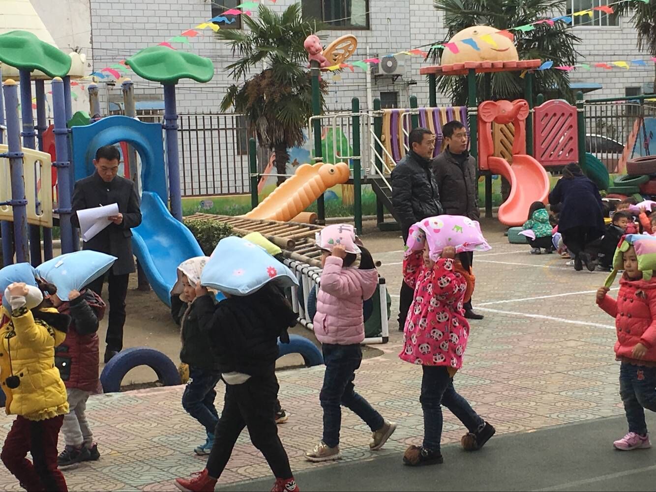 为了进一步普及防震减灾知识,让师幼儿牢固掌握应急避震的正确方法,11月29日下午,李堡镇中心幼儿园接受县安全演练评比,海安县教育局安监科副科长韩雪鹏、曹雪松,李堡镇教办许金平参加了此次活动。